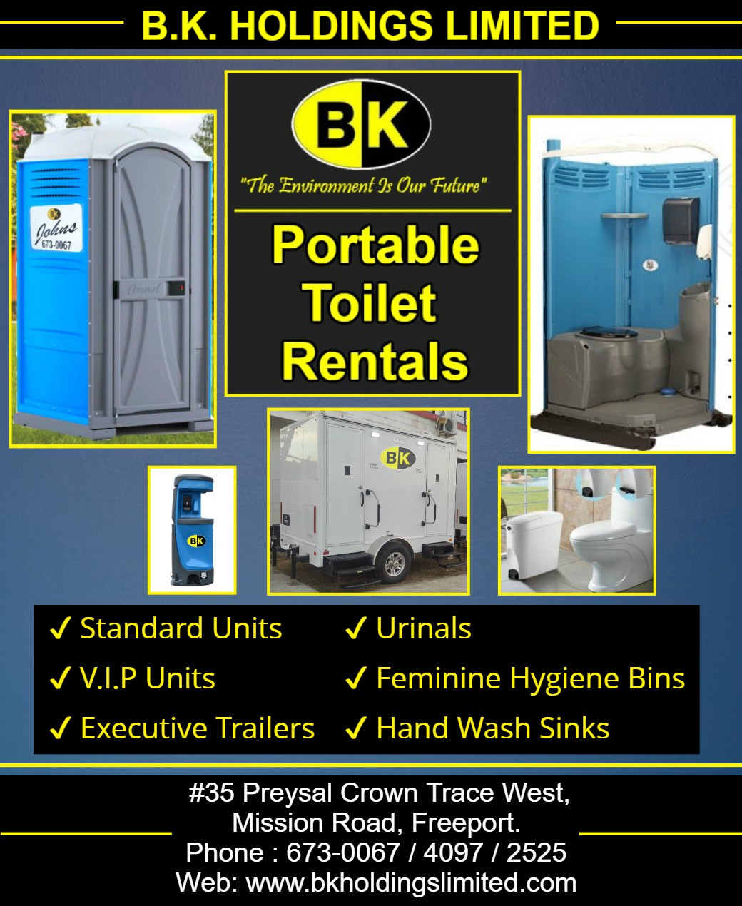 B.K. Holdings Limited is a waste management company established in 1984, providing solid and liquid waste removal services to a variety of industries throughout Trinidad & Tobago; including the public sector, the private sector and industrial and commercial clients. We transport and dispose of almost any solid and liquid waste including industrial waste, oil absorbents and tank sludge. We provide waste disposal services for all municipalities and we are also the largest provider of bins to all municipal corporations and private businesses in Trinidad & Tobago.
